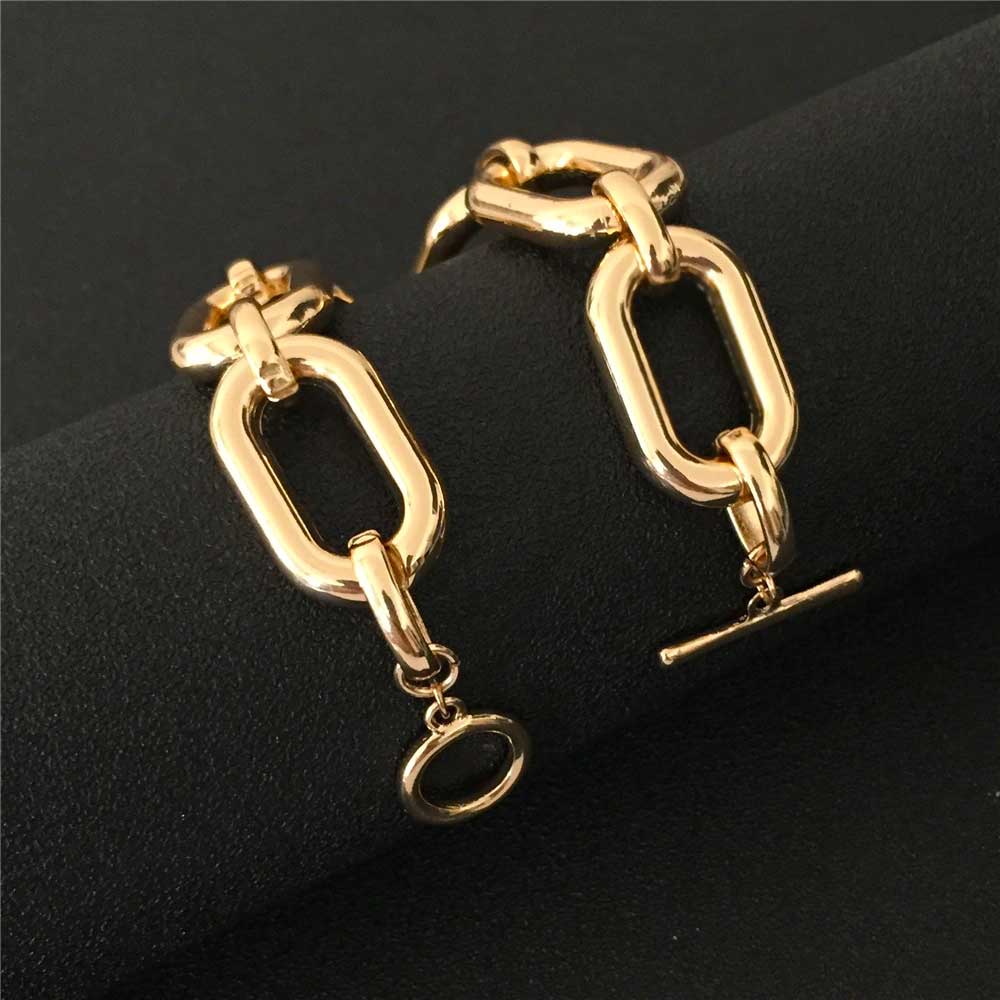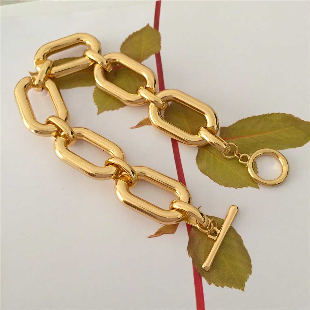 Startseite » Armband Dealer Onlineshop » Goldener und silberner Armschmuck » Gold Armband mit breiten Gliedern Chunky Style ligth but bold
