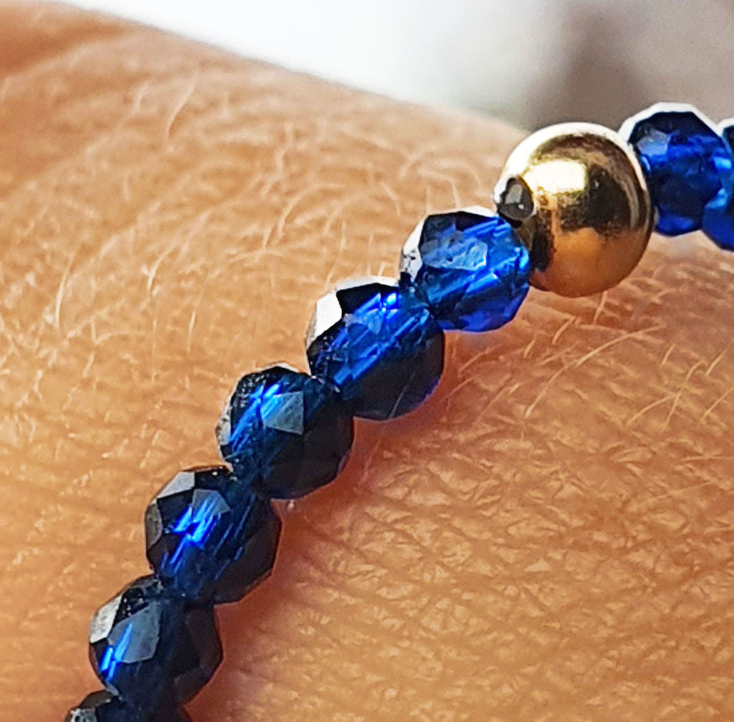 • Material: Laborgezüchtete Saphire (ca. 1,5 mm, dunkelblau), 14 K American Filled Gold