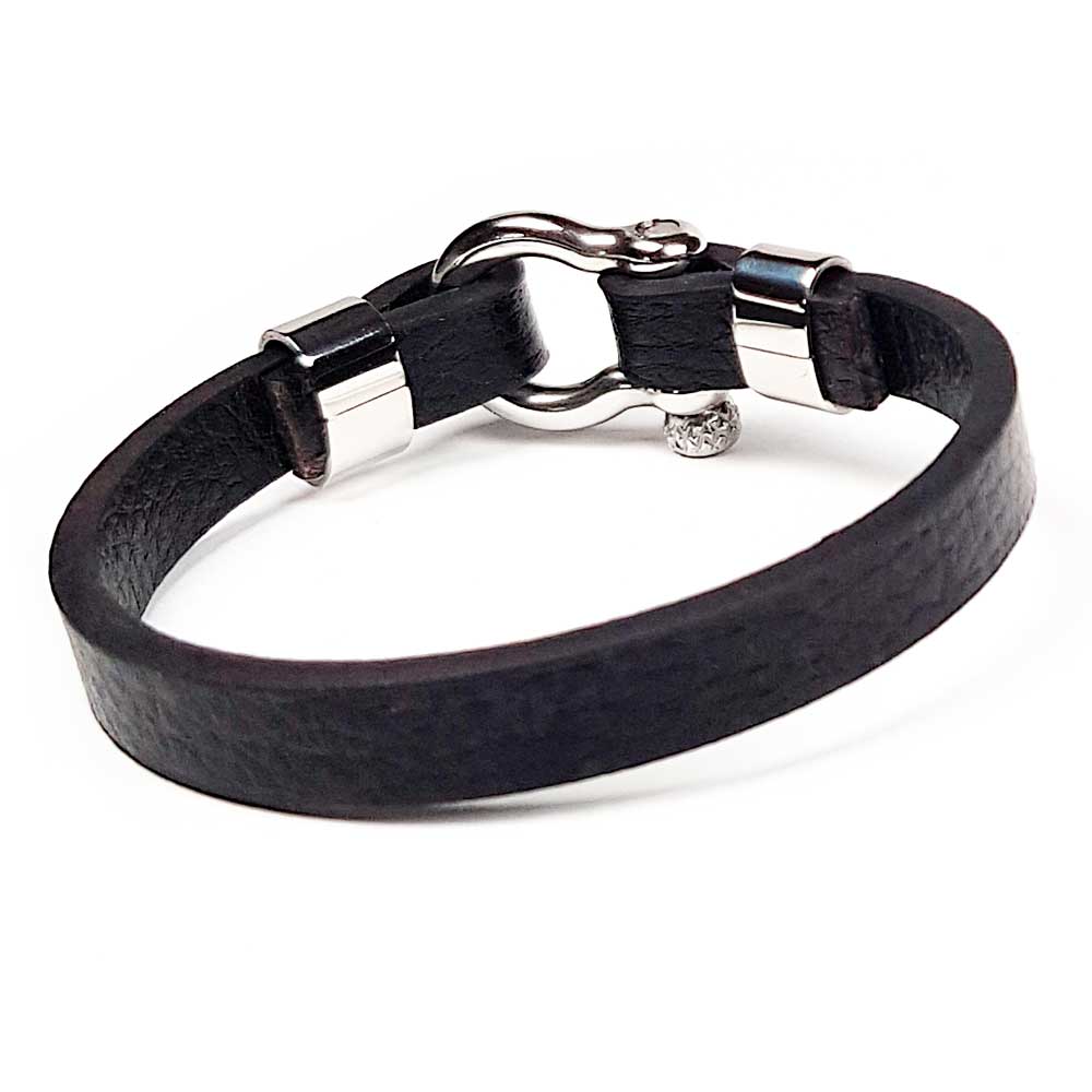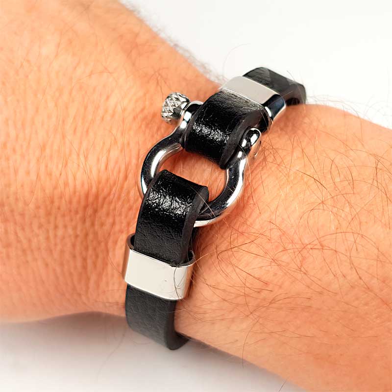 Startseite » Armband Dealer Onlineshop » Armbänder » Lederarmband mit Schäkel Edelstahl schwarz silber für Männer