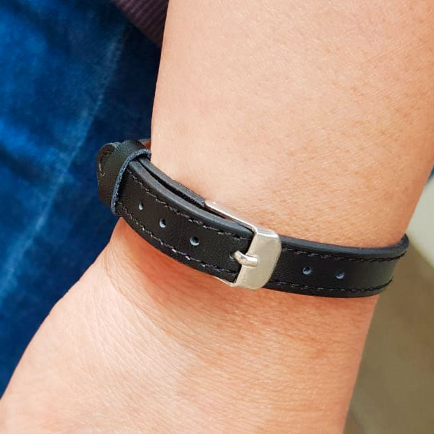 Damen Lederarmband mit Schnalle schwarz schlicht