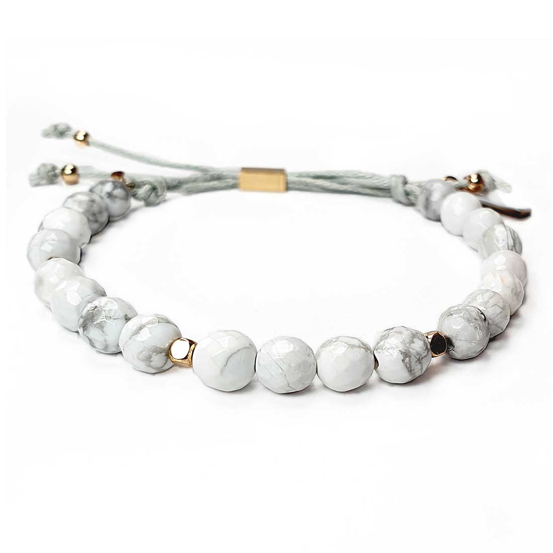 • Elegantes Damenarmband aus echten 5 mm facettierten Howlith-Perlen