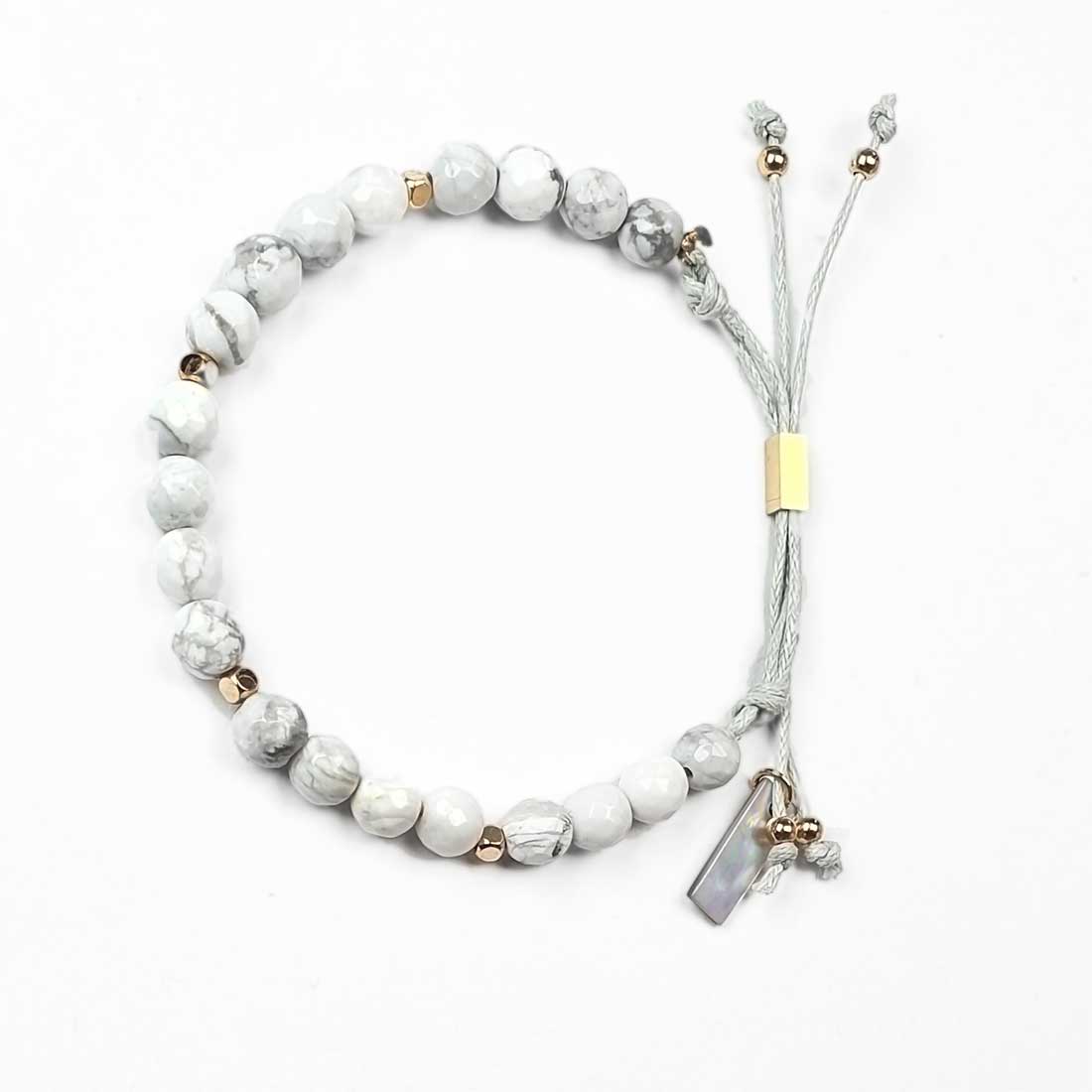 Howlith Armband Damen – Boho Schmuck mit weißen facettierten Perlen, vergoldeten Elementen & Perlmutt-Anhänger