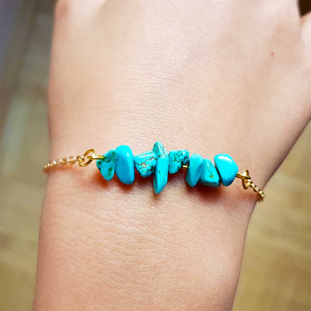 Türkis Naturstein Armband tourquise gold mit Gliederkette
